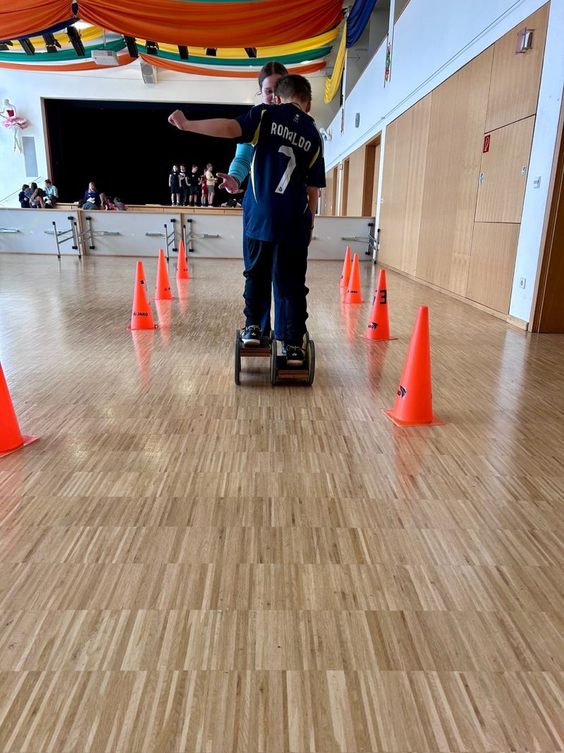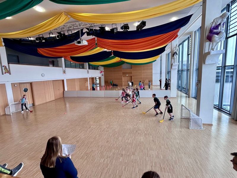 Im Stationenbetrieb konnten die Kinder verschiedene Disziplinen ausprobieren: Fußball, Hockey, Parcours, Kegeln sowie „Kleine Spiele“. Außerdem gab es eine Schulhausführung, bei der die Gäste unsere Schule besser kennenlernen konnten.